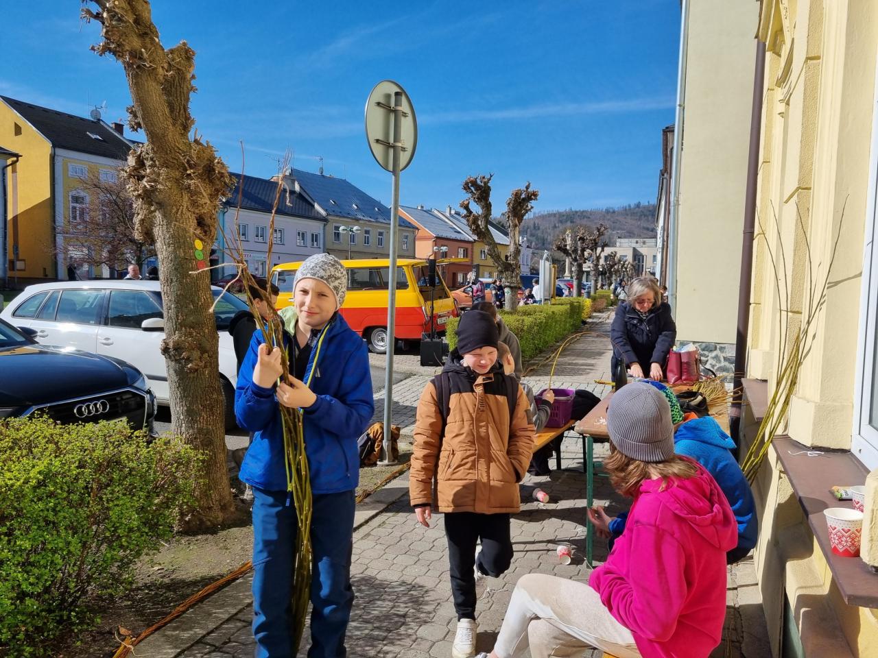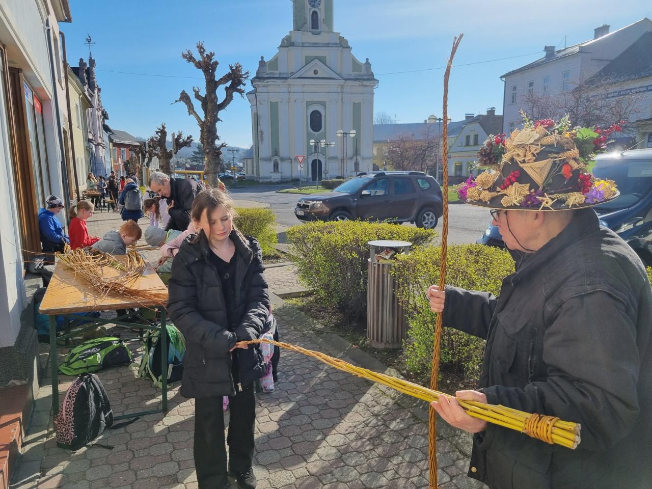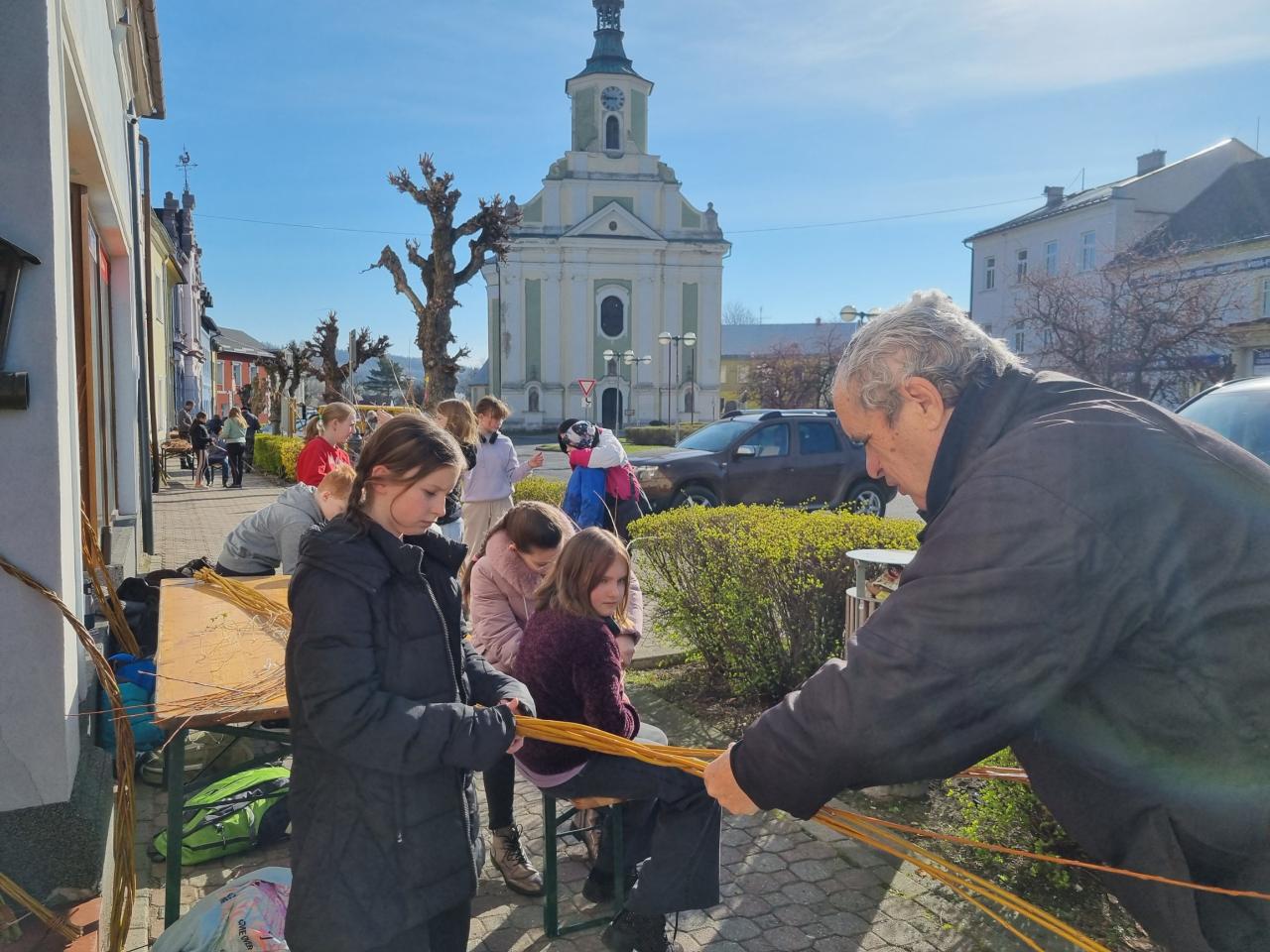 Nejen že se žáci pátých tříd, pod vedením zkušených pletačů, seznámili s tradiční technikou výroby pomlázek, ale také se jim díky jejich šikovnosti podařilo překonat loňský rekord v délce pomlázky – letos dosáhla úctyhodné délky 243 metrů! Lidé na náměstí tak s nadšením sledovali výkony dětí, kterým se podařilo navodit tu pravou velikonoční atmosféru na náměstí.