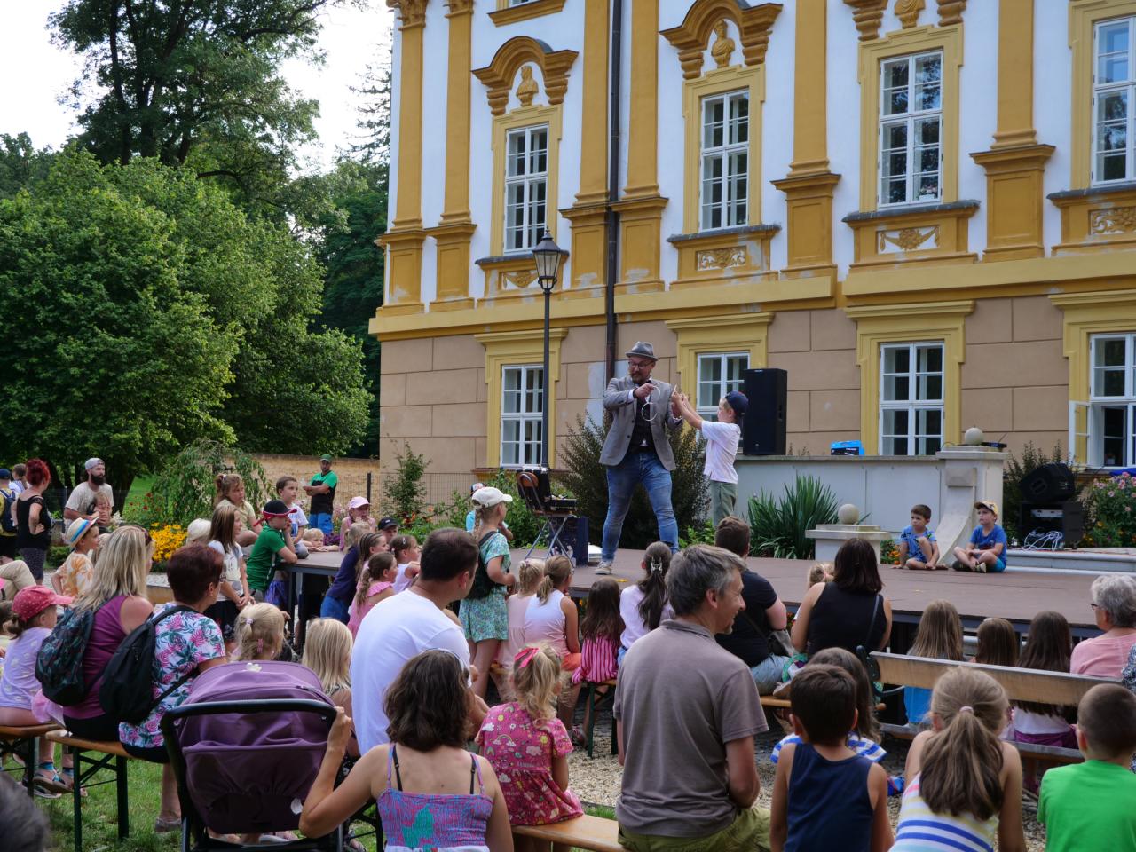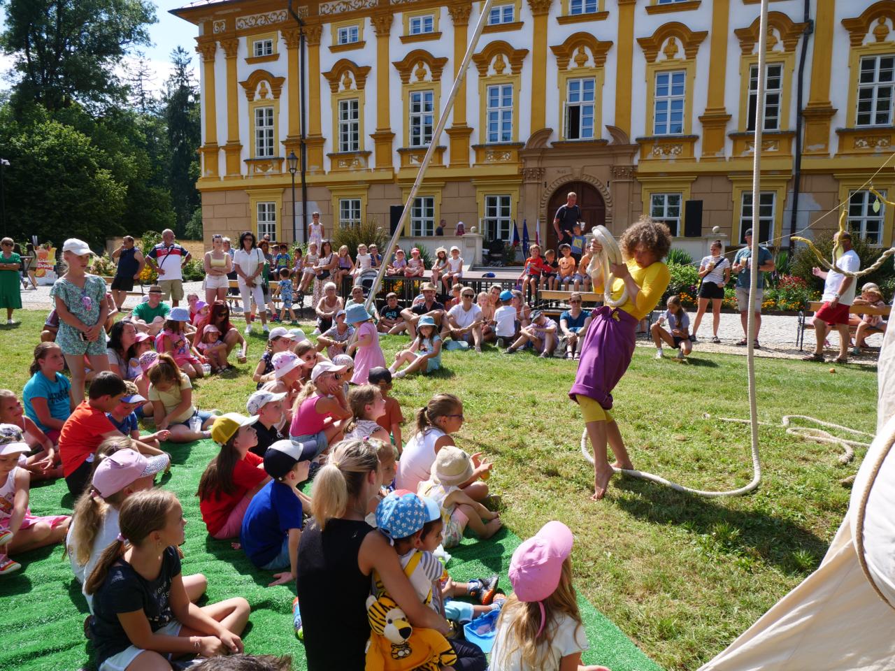 V sobotu 27. července se zámek v Linhartovech proměnil ve svět cirkusové zábavy, když zde vystoupil pouliční Cirkus trochu jinak. Pro děti byly během dne připraveny různé cirkusové workshopy, kde se mohly naučit žonglování s míči, hula hoop, házení kruhem na cíl a mnoho dalších dovedností. Nejmladší návštěvníky také okouzlilo novocirkusové vystoupení s názvem Motýlí svět a interaktivní divadelní představení Poppy a Adélky.
