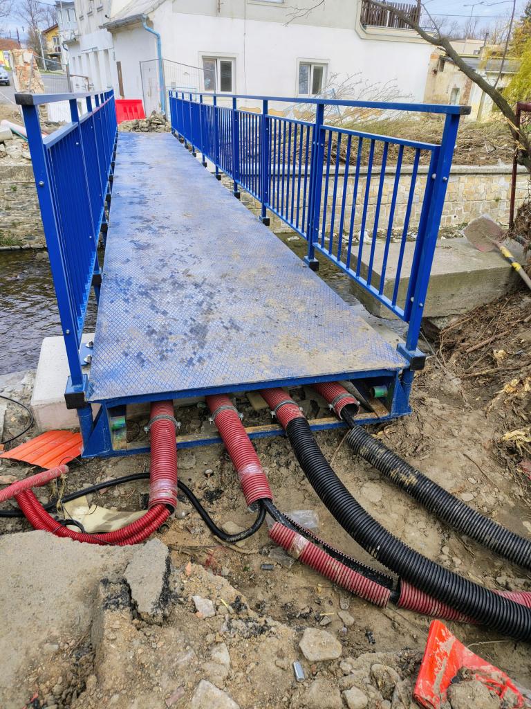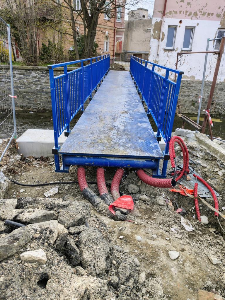 Lávka na Vodní ulici (přechod od autobusu na náměstí) byla dokončena už na přelomu února a března. Jde o tzv. technologickou lávku, pod kterou jsou vedeny rozvody plynu a sítí ČEZu, Cetinu a města. ![]()