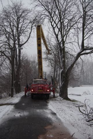 Kácení mají na starosti naši hasiči, kteří disponují potřebnou výškovou technikou. Situaci komplikuje přítomnost vedení elektrických drátů v blízkosti kácených stromů. Úklid veškerého dřeva a větví mají na starosti pracovníci sběrného dvora.