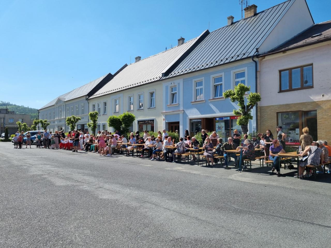 Vůně grilovaných makrel a klobás se ve středu 31. května nesla náměstím – všichni jsme společně ve spolupráci s Hasiči Město Albrechtice pokáceli májku na náměstí.