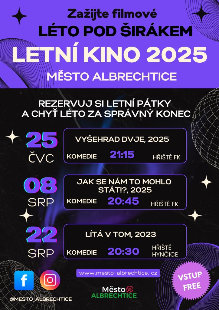 Promítání bude tradičně zdarma a konat se bude na hřištích v Městě Albrechticích i Hynčicích. Vezměte si deku, kempingovou židli nebo jen dobrou náladu.