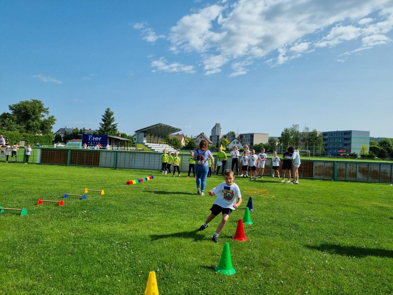 Po zahájení se jednotlivé týmy rozptýlily po sportovních stanovištích. Malí sportovci se postupně utkali ve skoku do dálky, štafetovém běhu s překážkami, hodu míčkem do kruhu a dalších disciplínách, které prověřily jejich rychlost, obratnost i týmovou spolupráci.