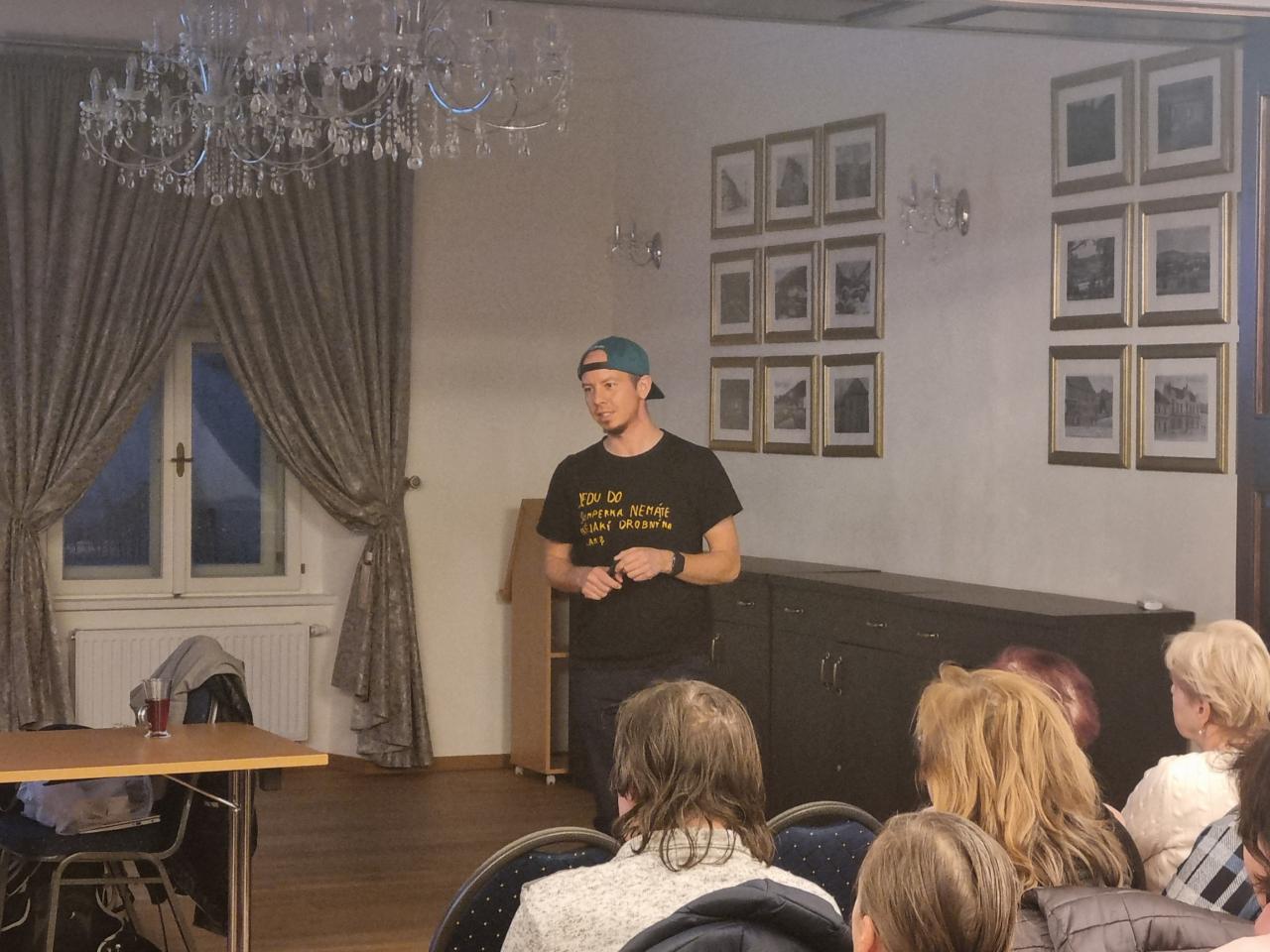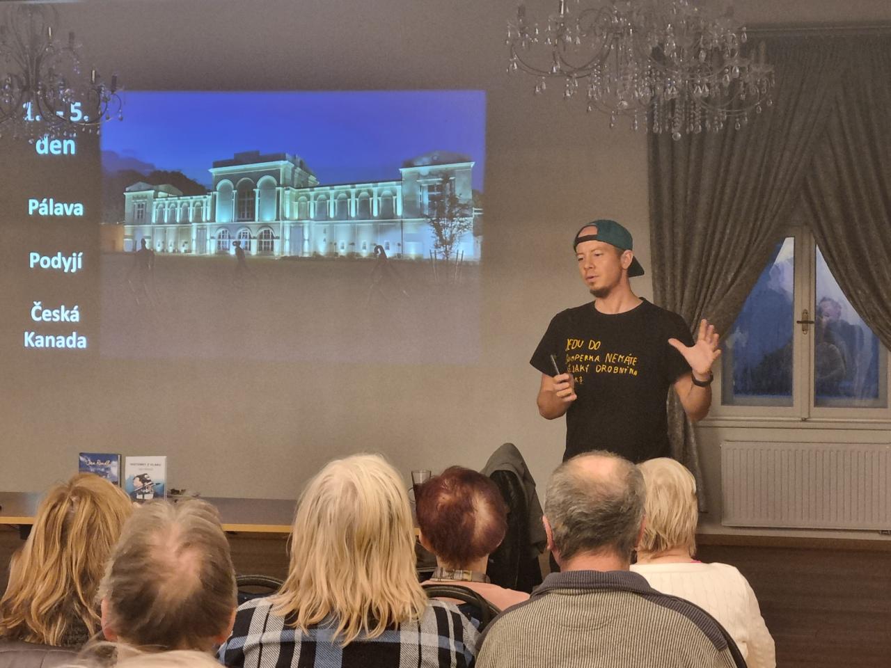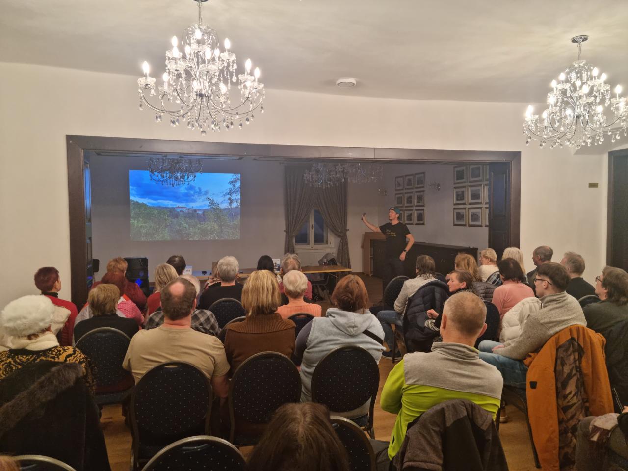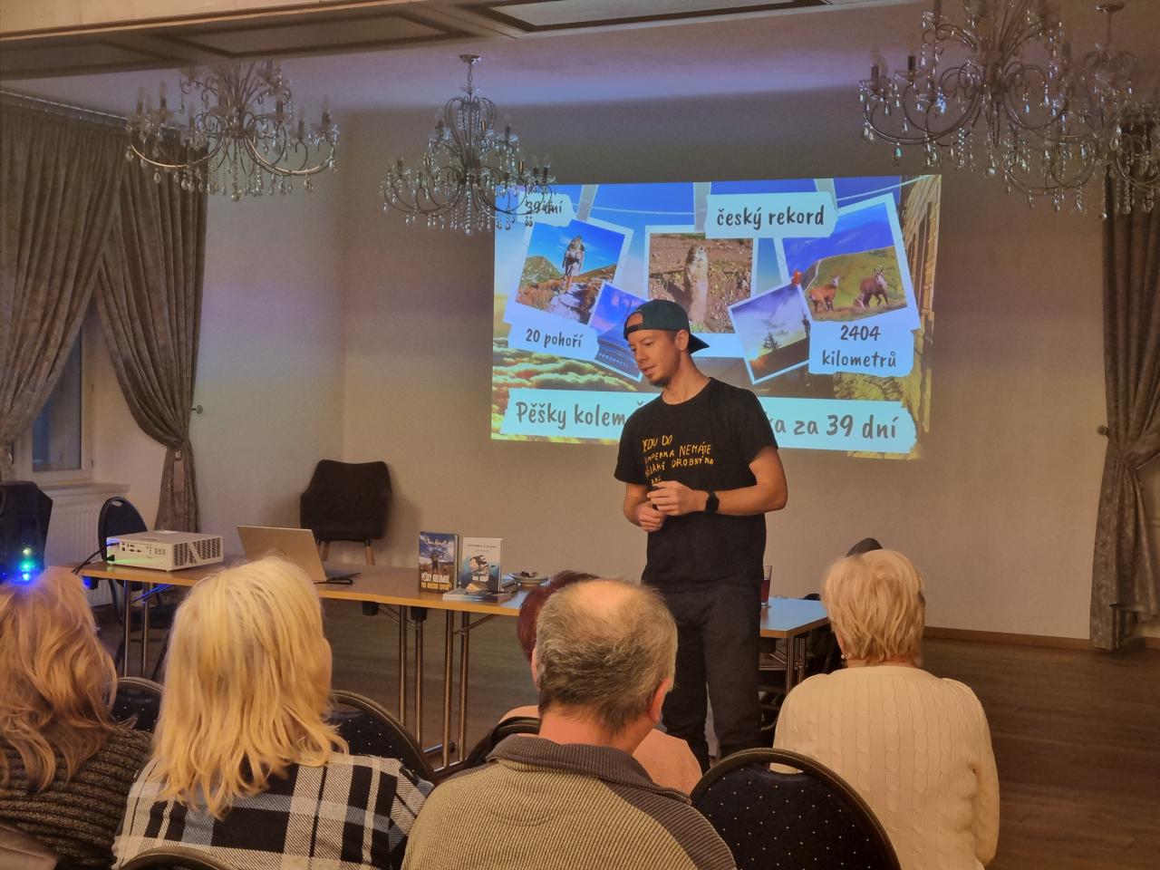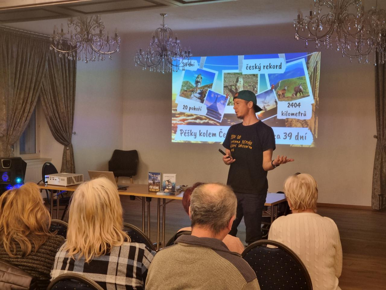Jan Rendl posluchačům představil svůj originální a odvážný nápad vydat se pěšky kolem hranic bývalého Československa. O své cestě, která se zatím řadí mezi české rekordy, vyprávěl poutavě, s humorem a nadsázkou, a během přednášky aktivně zapojoval i publikum.