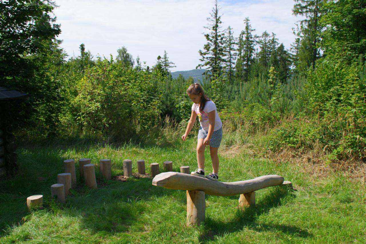 Stezka měří přibližně dva kilometry a nabízí jedenáct tematických zastavení. Návštěvníci se setkají s hravými skřítky, lanovou mini-dráhou, dalekohledy i přírodními herními prvky z odolného akátového a dubového dřeva.