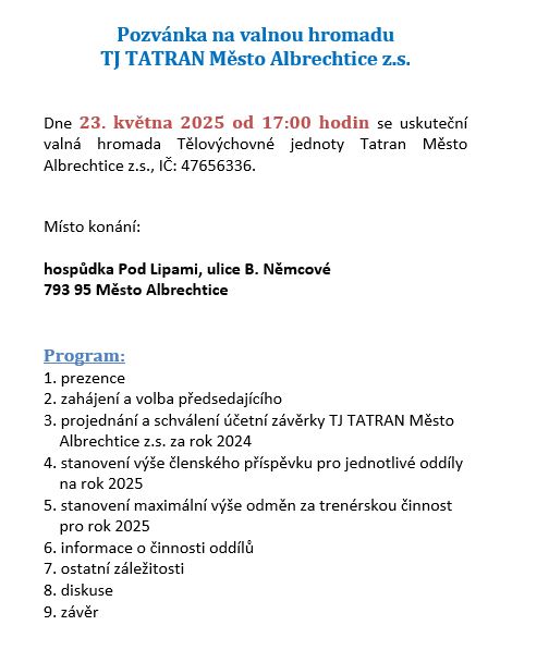 projednání a schválení účetní závěrky TJ TATRAN Město Albrechtice z.s. za rok 2024