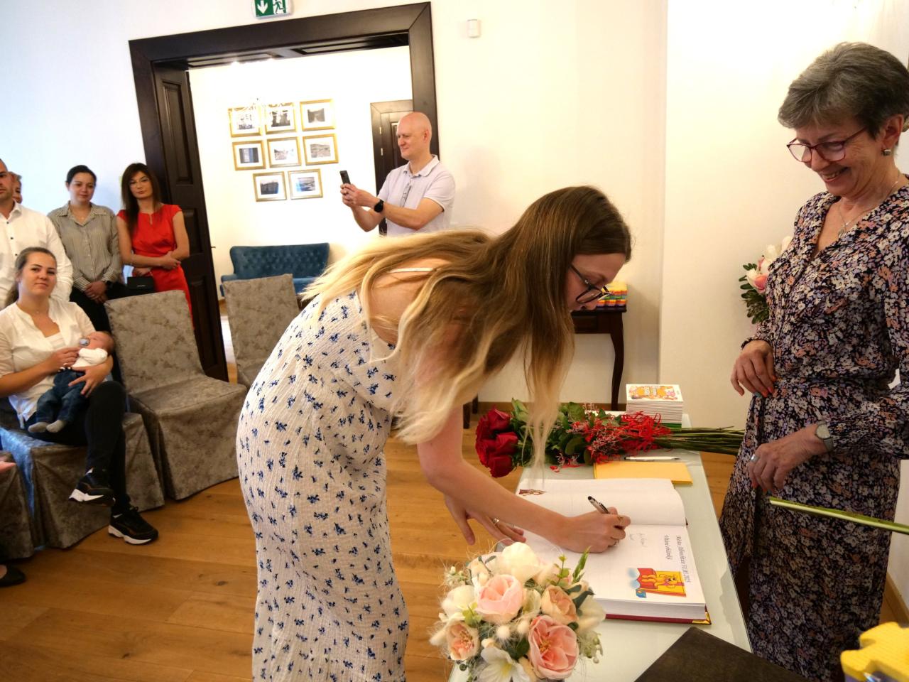 Slavnostní atmosféru zahájila starostka svým projevem. Maminky se následně zapsaly do kroniky sboru pro občanské záležitosti a převzaly květiny spolu s drobnými upomínkovými dárky. Všem dětem přejeme do života pevné zdraví, hodně štěstí a radosti.