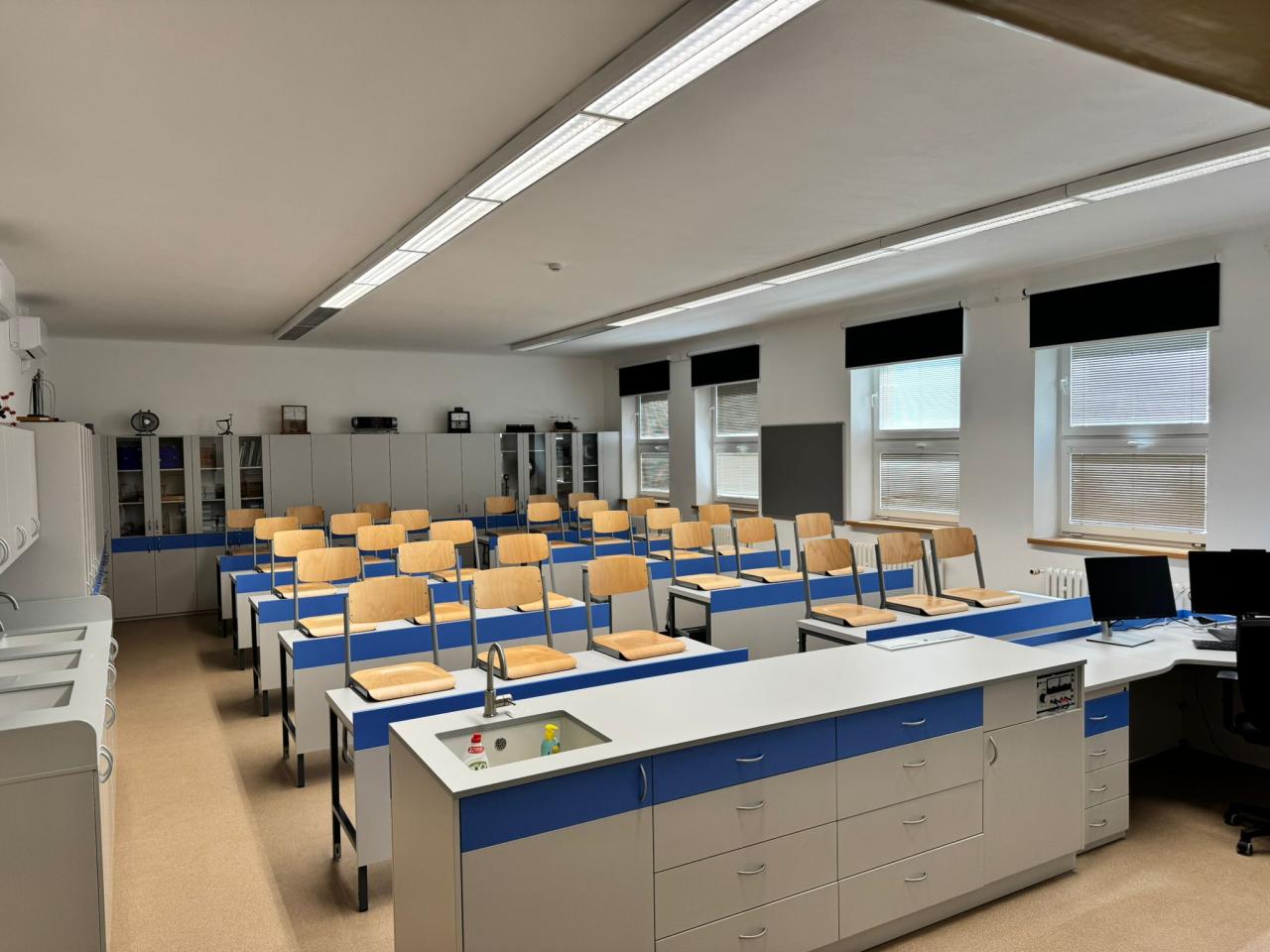 Výsledkem je zcela nově zrekonstruovaná a vybavená odborná učebna, která nabízí moderní zázemí pro výuku fyziky a chemie. Součástí projektu byly stavební úpravy, nové IT vybavení, nábytek i výukové pomůcky.
