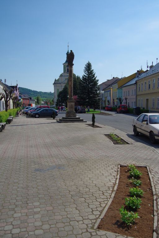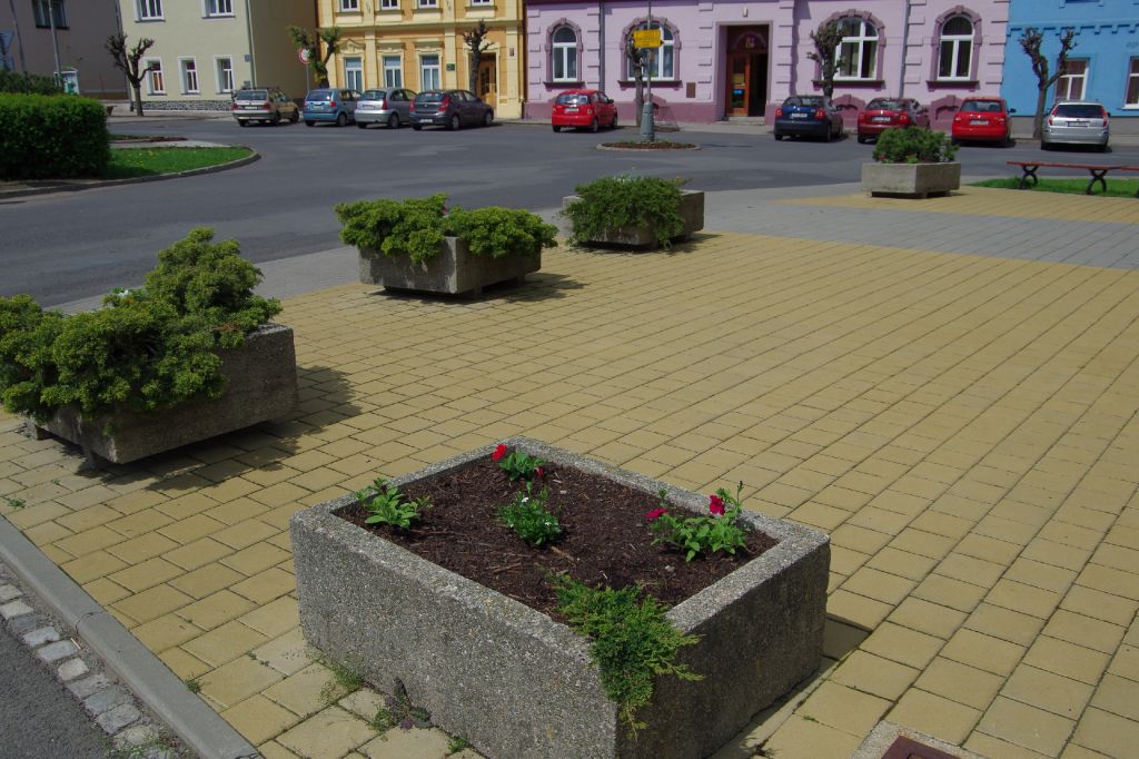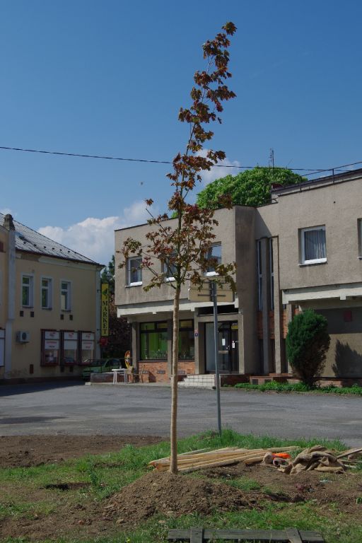 Poslední den měsíce dubna jsou na místě původních keřů a stromů nové sazenice, které v dospělosti nebudou dosahovat takových výšek, jak se to stalo u předchozích stromů. Ty přerostly i nejstarší památku na náměstí - Mariánský sloup z doby baroka. Po vykácení stromů byly odfrézovány pařezy i kořeny, aby se uvolnilo místo pro novou výsadbu. Při té příležitosti byly osázeny květinami nejen velké betonové květináče u kostela, ale i další plochy veřejné zeleně na náměstí.