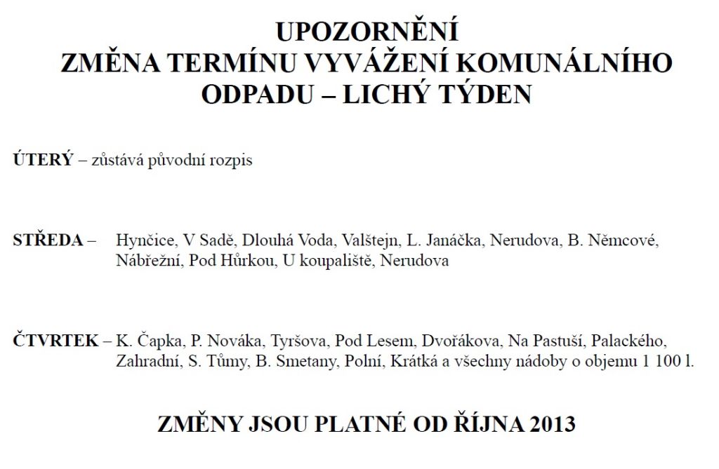 Od měsíce října nastala změna v harmonogramu vyvážení komunálního odpadu.
