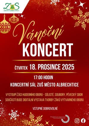 Zveme vás na slavnostní vánoční koncert žáků hudebního oboru ZUŠ Město Albrechtice. Vystoupí sólisté, komorní soubory i pěvecký sbor. Součástí programu bude také digitální výstava tvorby žáků výtvarného oboru. Vstupné dobrovolné.