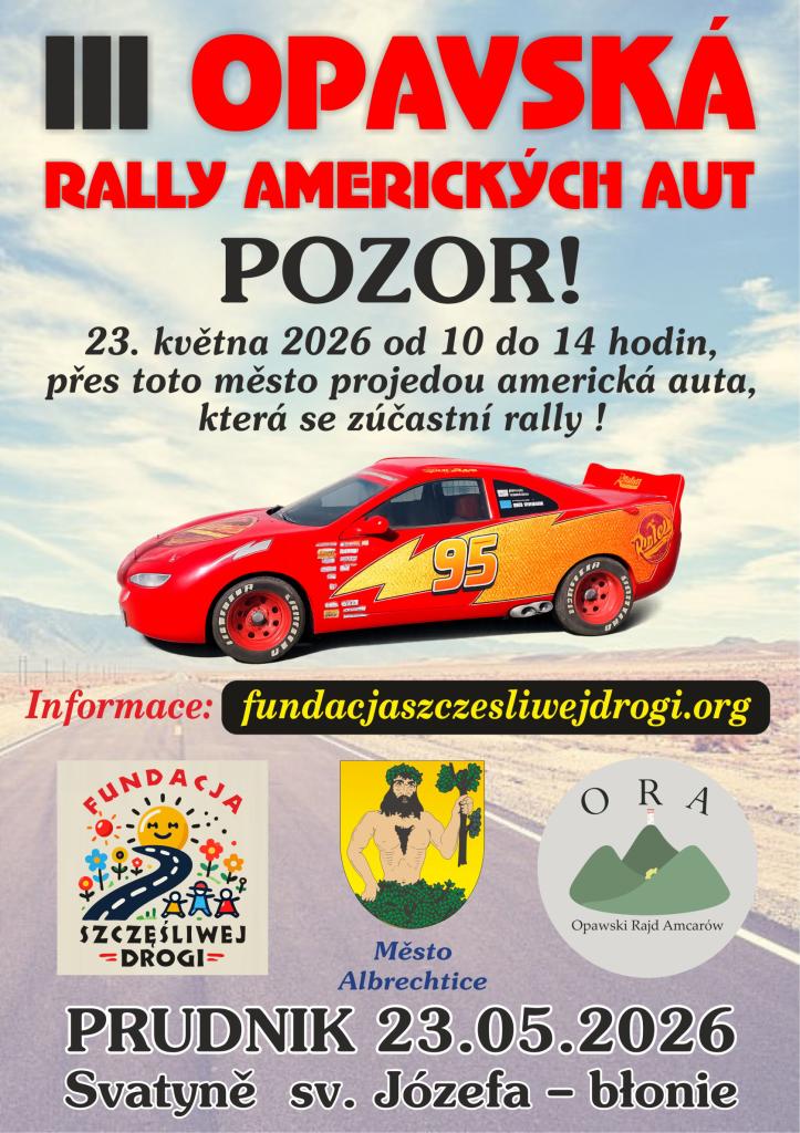 V čase přibližně od 10:00 do 14:00 hodin se můžete těšit na průjezd stylových amerických vozů, které budou součástí rally směřující do polského Prudniku. Na náměstí mají zastávku, můžete si je tedy prohlédnout zblízka.