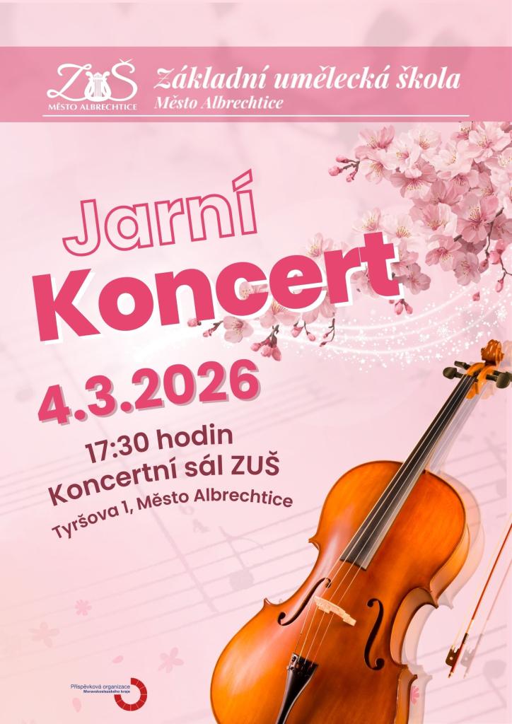 Základní umělecká škola Město Albrechtice srdečně zve na tradiční jarní koncert svých žáků. Koncert se koná ve středu 4. března v 17:30 hodin v koncertním sále ZUŠ.