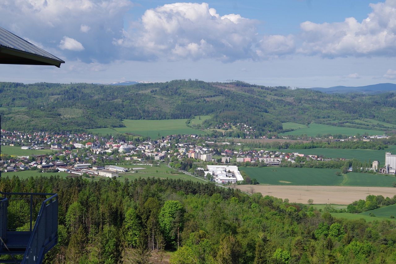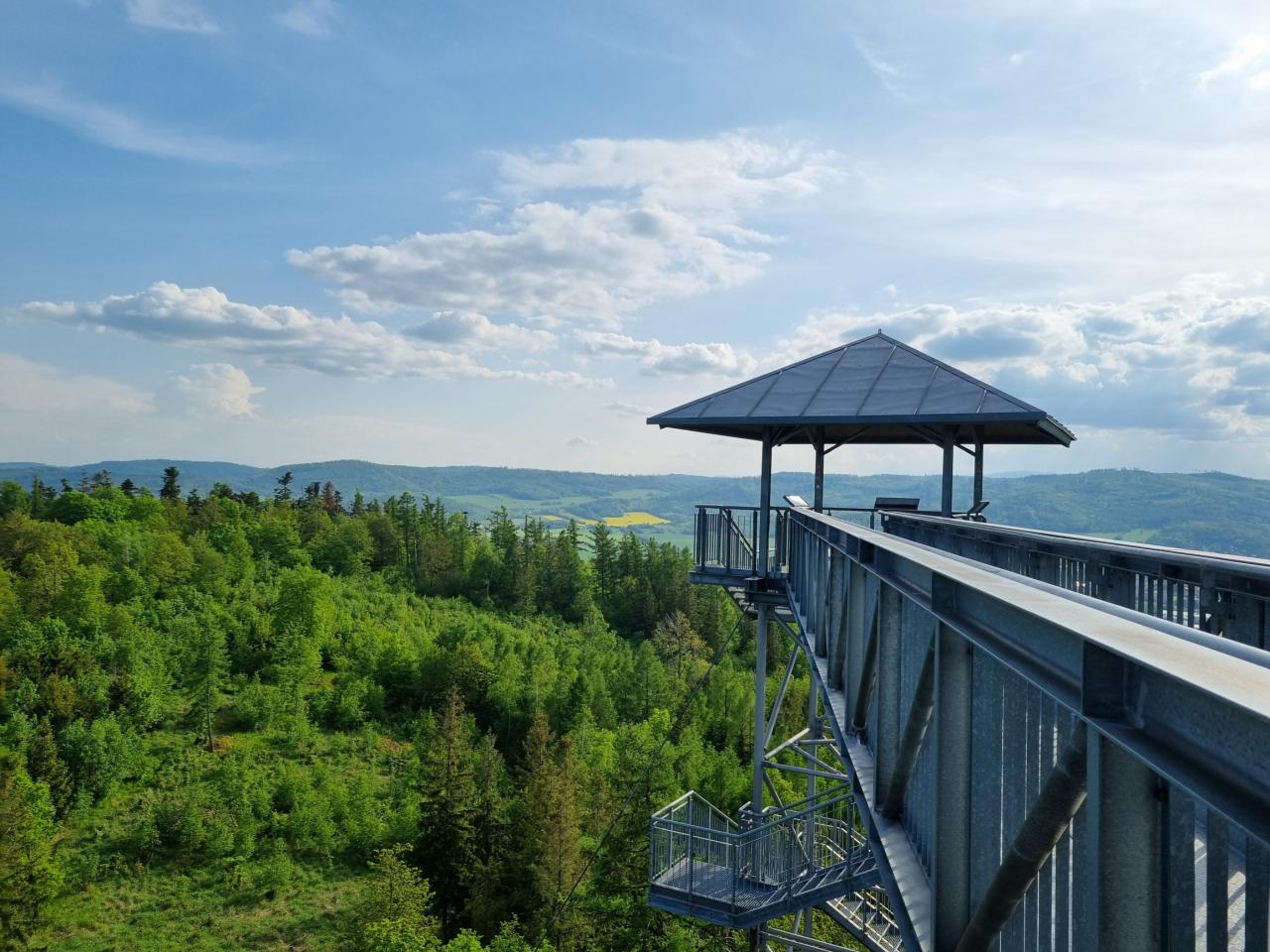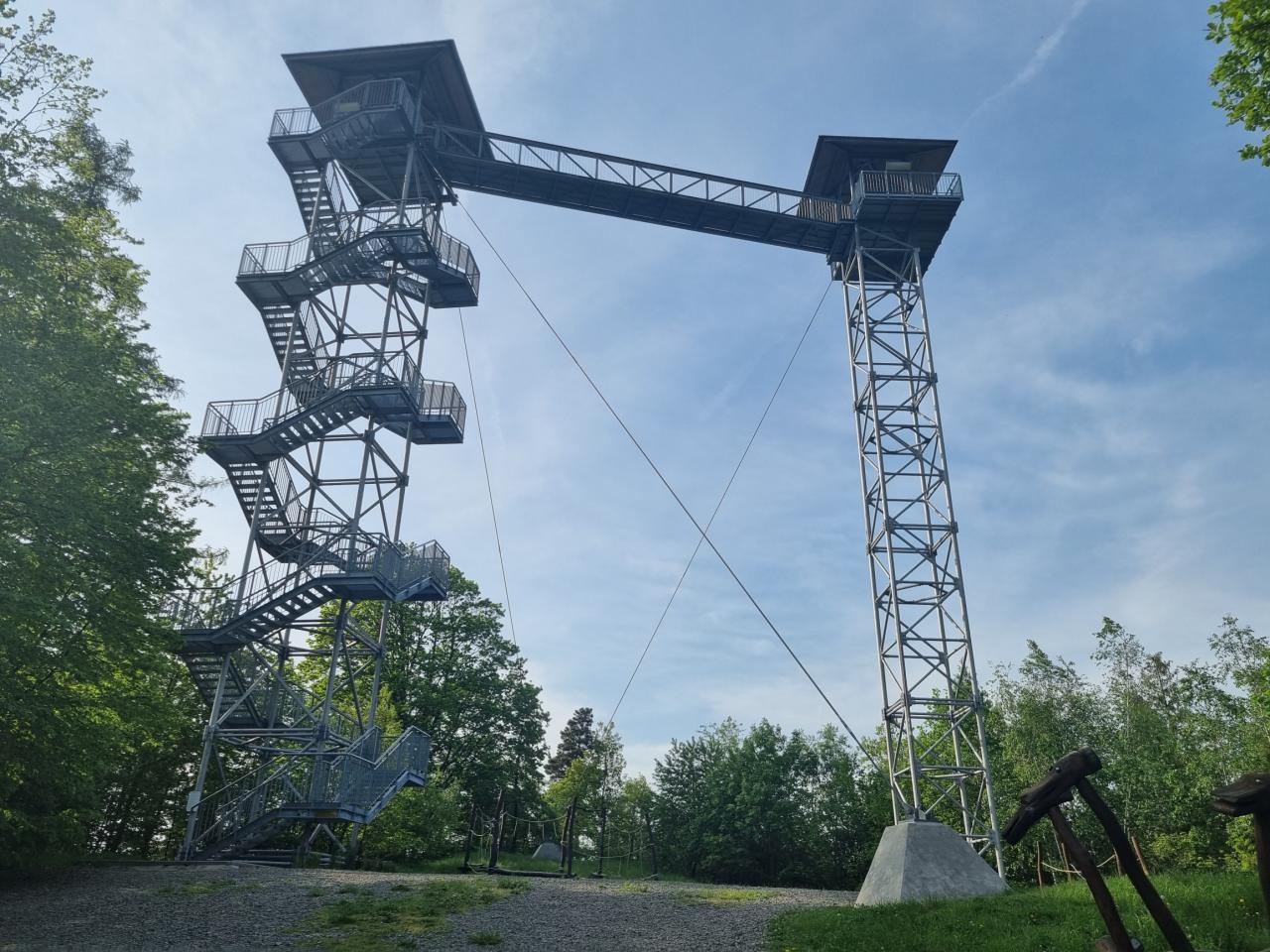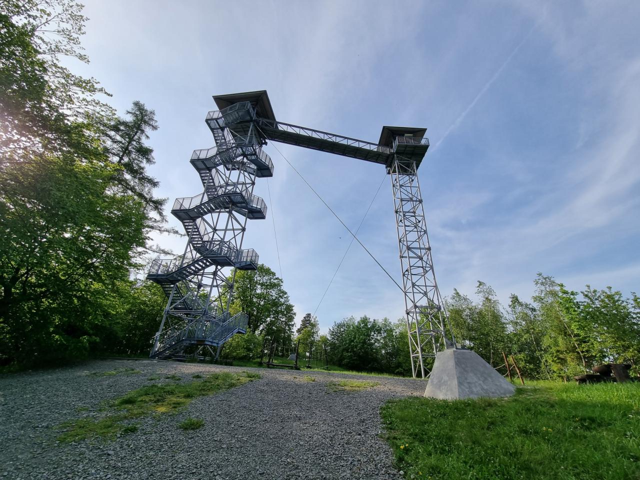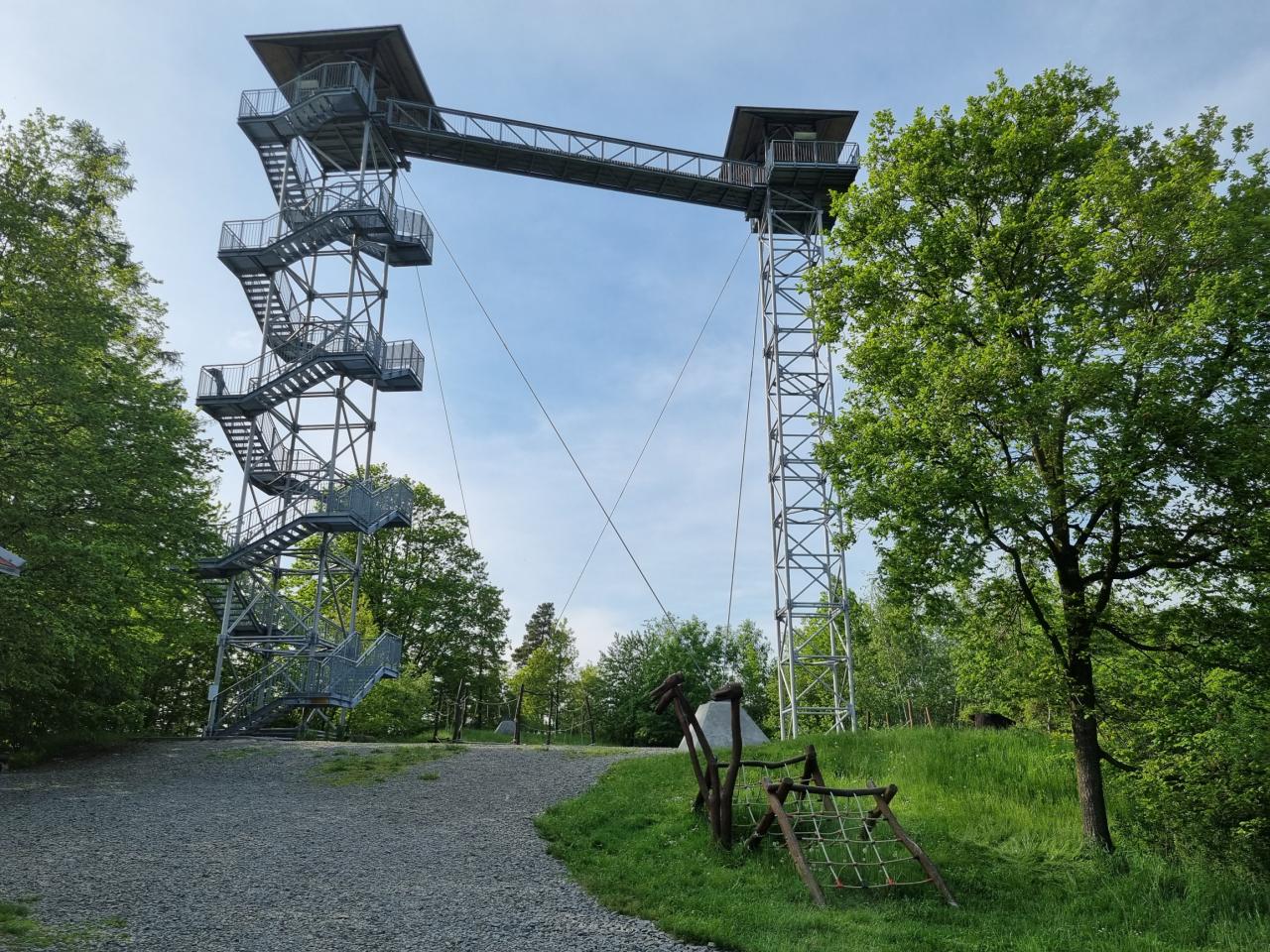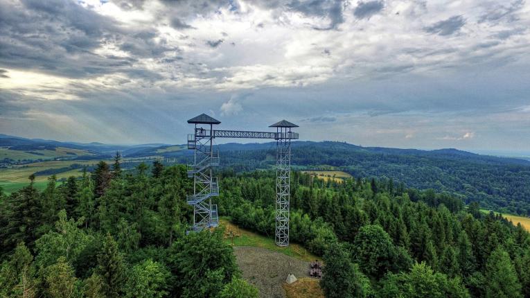 Unikátní a ojedinělá železná dvouvěžová rozhledna nabízí výhledy na Praděd, krnovskou Cvilínskou rozhlednu ba dokonce i vzdálenější Lysou horu.